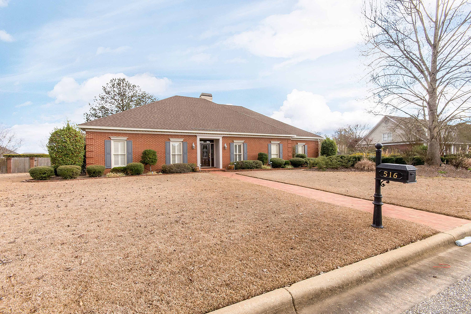 | Wonderful house on beautifully landscaped lot. Pretty wood floors in living areas and two bedrooms, one being the main bedroom. Tile floors in the eat-in kitchen back hall and large laundry room. Beautiful leaded glass front door and spacious foyer. Big dining room and very large great room with built in bookcases and fireplace and a wall of windows and French doors opening to brick paved covered patio and landscaped privacy fenced backyard. Enormous eat in kitchen with slab granite countertops and loads of cabinets, pantry and built in desk. All the guest bedrooms are big and have easy access to a bath. One bedroom has bathroom entrance from bedroom. Oversized side load garage and extra parking space in driveway. Beautiful brick paths and walls. |