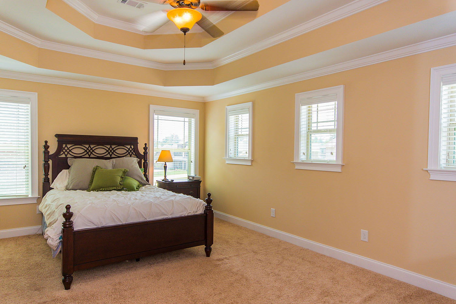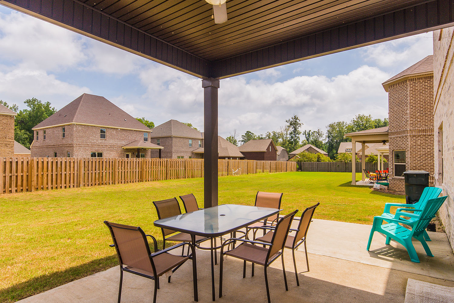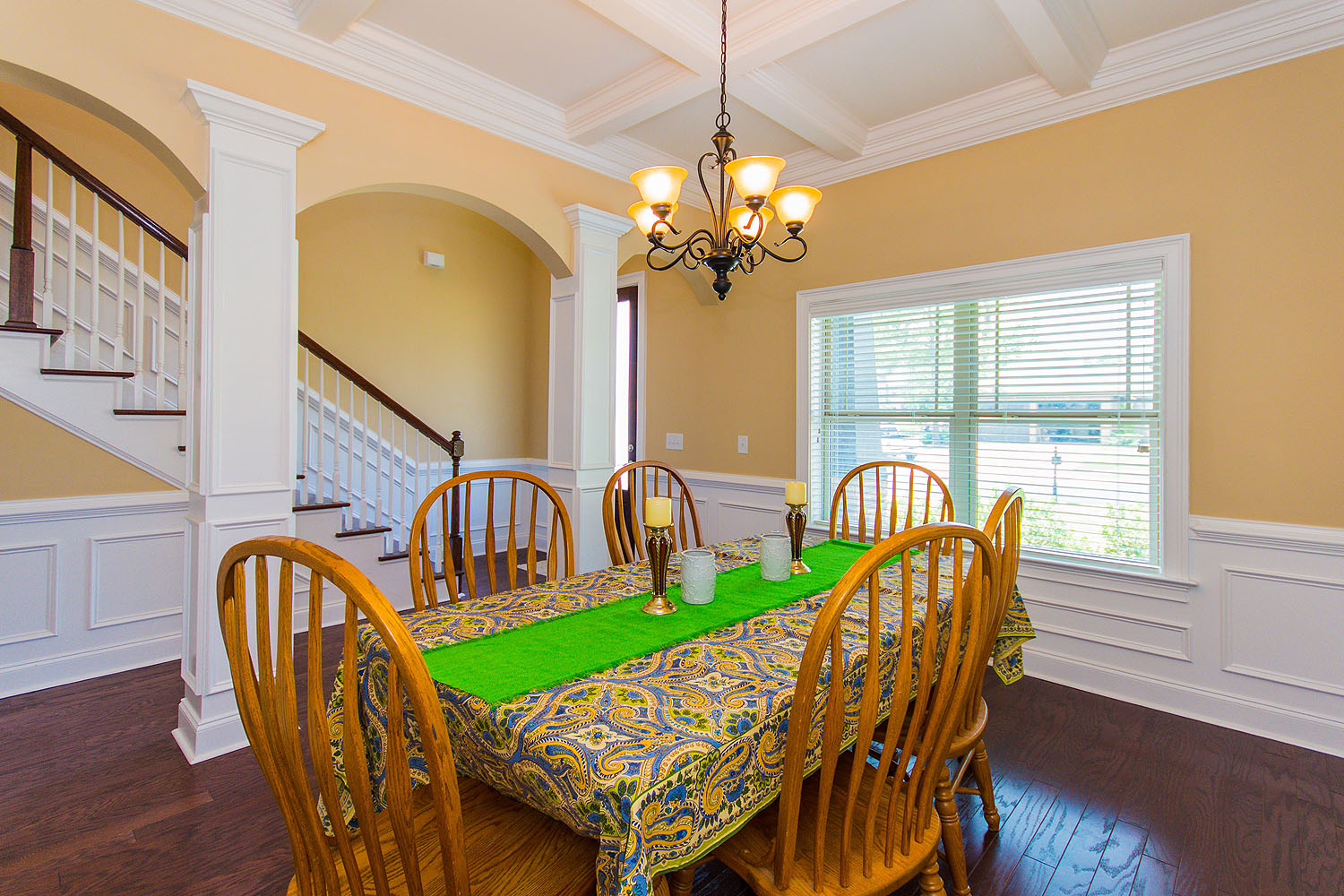Enormous great room w/elegant decorative columns & gas fireplace open to eat-in kitchen w/granite breakfast bar. Formal dining room w/arches. Master bath w/huge walk-in closet. Unique, as well as an innovative plan, this home offers an incredible range of options. Built by Stone Martin Builders in 2013 featuring spray foam insulation, tankless water heater, granite, hardwoods, coffered ceiling, crown molding, tile backsplash, covered patio. |
